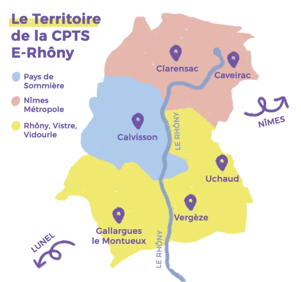 La CPTS e-Rhôny couvre un territoire de 17 communes, réunissant plus de 48 000 habitants. Cet ancrage local permet de développer des actions de santé de proximité, adaptées aux besoins de chaque village et de leurs habitants.
